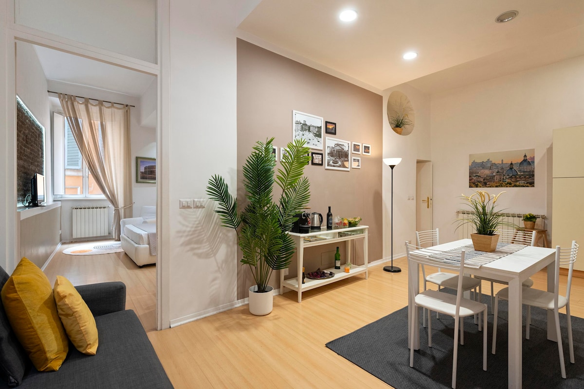 Casa Naïf se encuentra en el primer piso (en Italia, esto significa que subes un tramo de escaleras a pie) de un antiguo edificio en el centro de Roma. Nosotros, los propietarios, vivimos en un apartamento separado en el piso superior. Casa Naïf está amueblada con muebles, objetos y muebles, recuerdos de nuestros viajes, los lugares en los que hemos vivido y nuestros amados orígenes. Cada rincón del departamento inspirará tu estancia y a tu viaje, haciéndote sentir completamente como en casa.