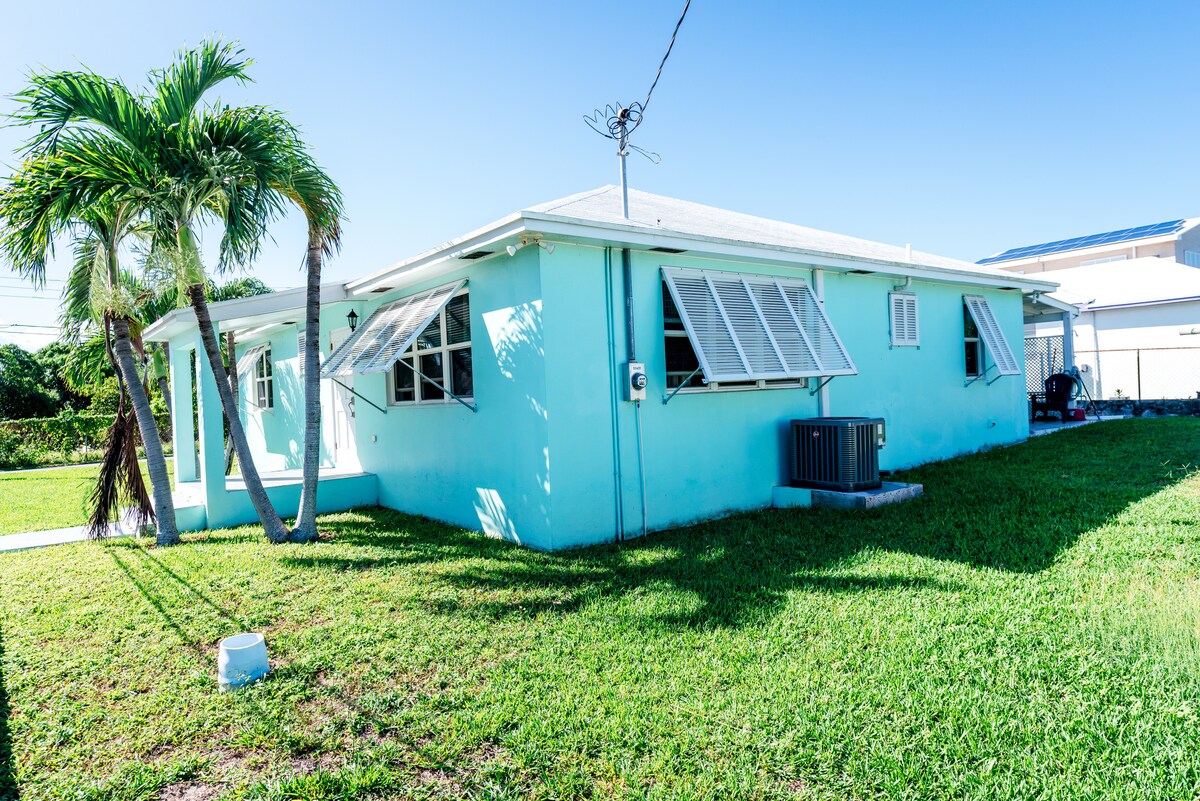 Beach Acess!! Beach chairs, Loungers, Umbrella cooler and table provided. 400 ft down sand path to Spanish Wells Beautiful 1.5 mile long white sand Beach. 4 seat golf cart included Boat tours available with Captainkidtours to fish, snorkel, swim with pigs, feed sea turtle, secluded beach picnics, starfish experience and much much more. New House Quiet neighborhood on dead end street