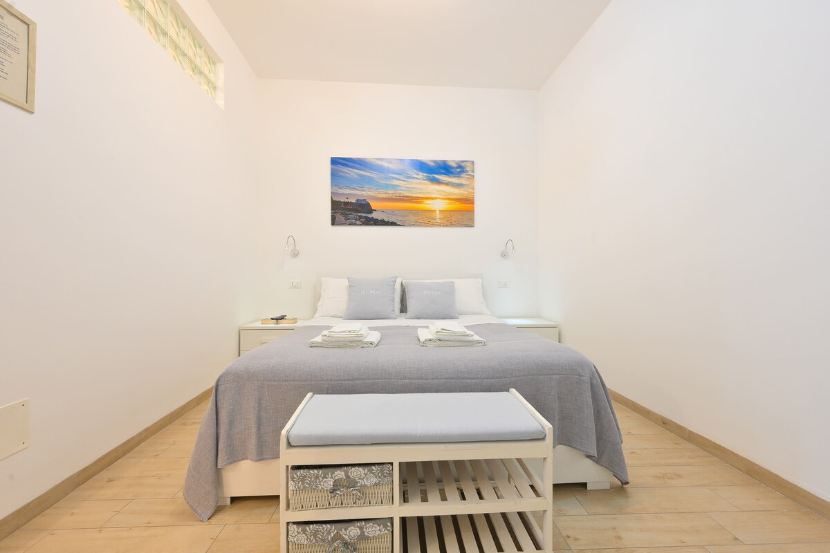 Apartamento acogedor recién reformado dentro de una zona de tráfico controlado, a pocos minutos a pie del mar. Tiene una vista maravillosa del castillo aragoneso, la bahía de Santa Anna y de Capri. El apartamento tiene dos dormitorios, dos baños, un área de cocina/sala de estar y una lavandería. Y también tiene un balcón espacioso que rodea la casa y donde puedes desayunar y tomar el sol. Tiene todas las comodidades: wifi, televisión, aire acondicionado, nevera y horno para lavar.