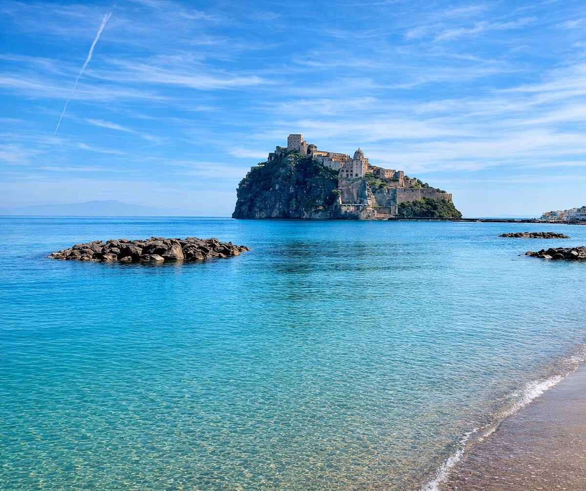 A rare beachfront property in the heart of Ischia with uninterrupted and spectacular sea & Aragonese Castle views. Once our family ancestral home, it has been beautifully transformed into a charming Beach House just two steps from Fishermen's Beach. Wake up to spectacular sunrises, fall asleep to the sound of the waves, and enjoy both the vibrant Italian summer and the peaceful off-season island atmosphere — all with modern comforts for a truly home-away-from-home stay.