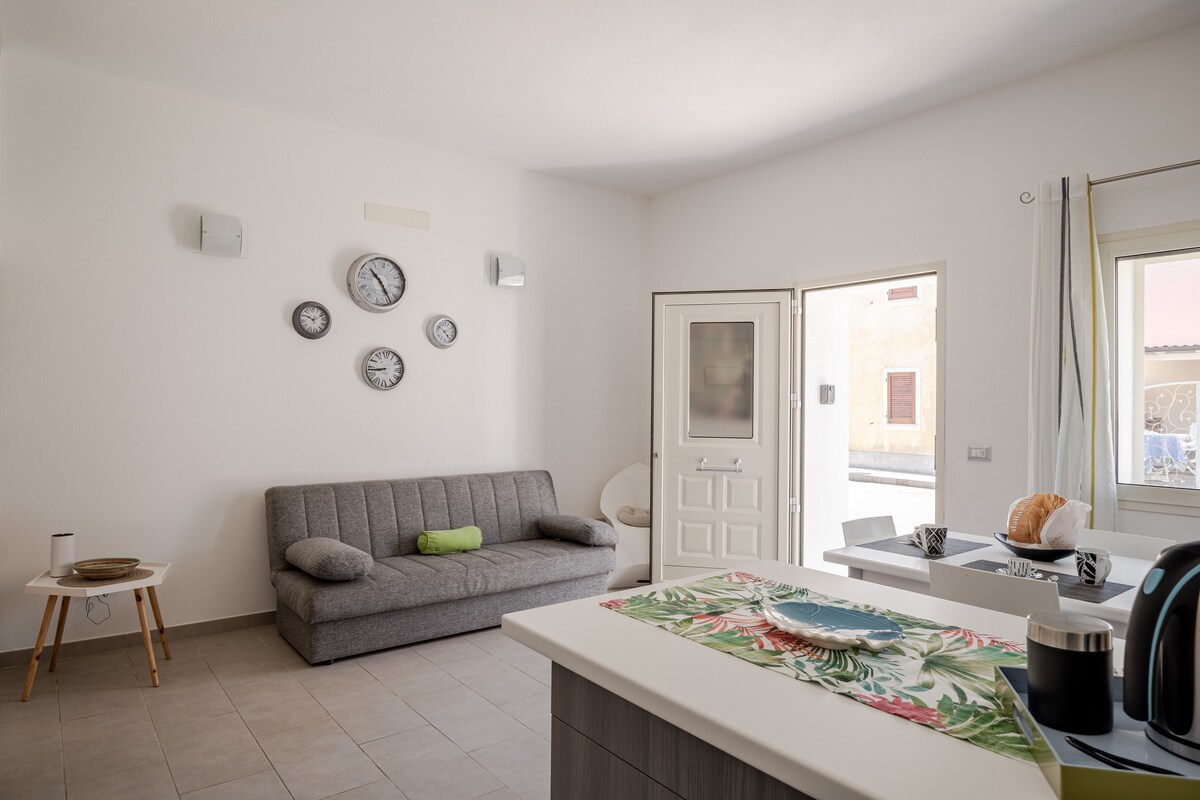 El departamento es NUEVO rodeado de vegetación con una espectacular vista al mar, con dos hermosos espacios al aire libre: el jardín y el porche. Los dos espacios están amueblados para cenar al aire libre y relajarse. El loft se encuentra a solo 150 metros de la playa de la bahía de Santa Reparata, una playa que en 2025 también recibió el premio BANDERA AZUL. Apartamento luminoso y cuidadosamente amueblado. Cuenta con todas las comodidades NO APTO PARA NIÑOS A pagar € 90 a la agencia de limpieza