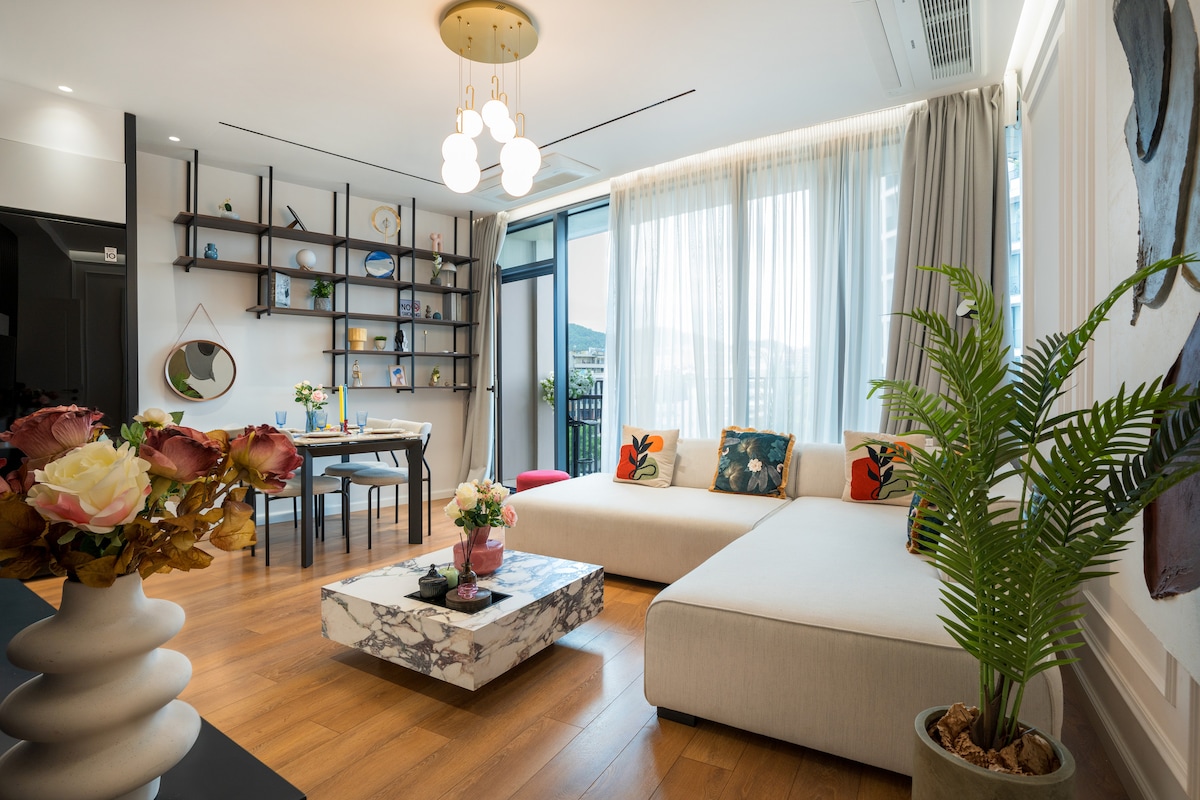 European Elegance Homes presenta un departamento de dos dormitorios cuidadosamente diseñado donde la estética europea moderna se une a la comodidad y la funcionalidad. Las texturas naturales, los acabados refinados y las paredes de microcemento crean un ambiente tranquilo. Los pisos con calefacción y el aire acondicionado central garantizan comodidad durante todo el año, mientras que una bañera independiente en el dormitorio principal agrega un lujo silencioso. Mobiliario curado, arte y sutiles acentos albaneses completan el espacio. Un balcón privado ofrece vistas abiertas a la ciudad para momentos de relajación.