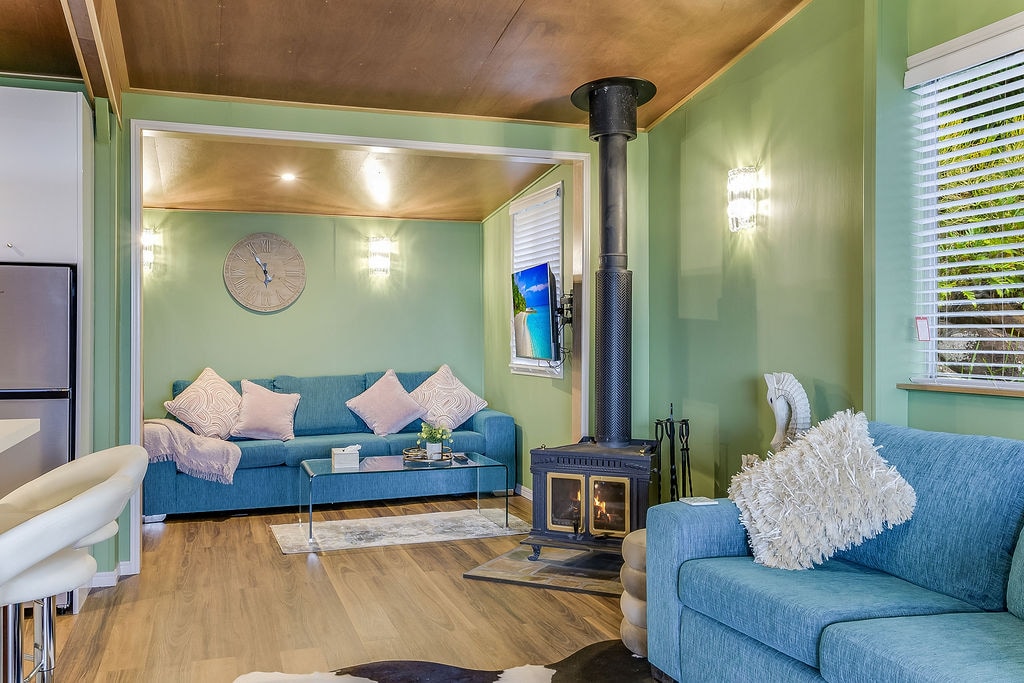 Bienvenido a The Cabin, un refugio romántico favorito de los huéspedes ubicado entre árboles con vistas al mar, a solo 7 minutos de Burleigh Beach, tiendas de moda de James St, restaurantes y bares en la Costa Dorada. Saborea una cena elegante, luego relájate junto a la fogata con vino y malvaviscos bajo las estrellas. Este escondite cuenta con una elegante chimenea de piedra (falsa), interiores elegantes y exuberantes jardines con múltiples zonas de relajación para recargar energías. ¡Perfecto para parejas que buscan un ambiente natural tranquilo cerca de la vibrante playa de Burleigh!