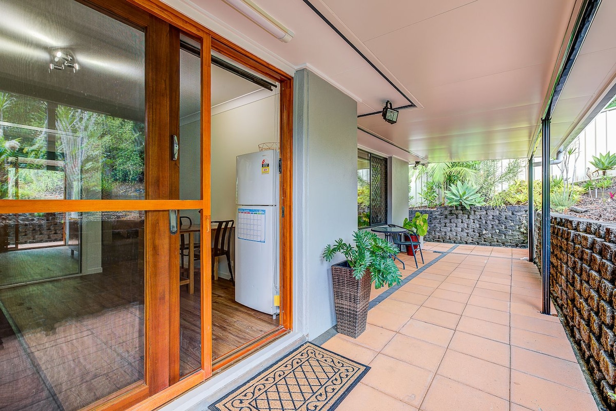 Bienvenido a «The Nook», tu serena escapada en Shailer Park. Totalmente independiente y privado, un refugio tranquilo para parejas o viajeros solitarios, a solo 30 minutos de Brisbane o de la Costa Dorada. Características: Cama king TV, wifi Microondas, placa de cocina Frigorífico grande. Baño Lavadora Aire acondicionado en el dormitorio y la sala de estar Cubierta y entorno al aire libre Lugares de interés en la zona: Centro comercial (2 min) Parque Daisy Hill Koala (5 min) 2 campos de golf públicos (a 10 minutos) Parques temáticos (20 min) Varias rutas de senderismo (5 min)
