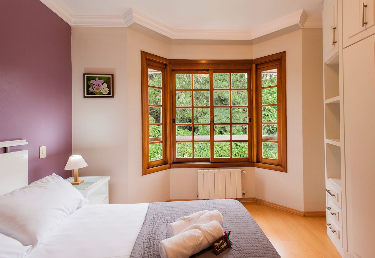 Apartamento muito bem decorado, com lareira, calefação, aquecimento à gás e adega e fica localizado em meio a uma vasta área de mata nativa. A pouco mais de 1Km do centro é possível acessar a "Praça das Etnias", Rodoviária e Rua Coberta com uma caminhada de até 20min. A localização e a estrutura do apartamento e do condomínio permitem tranquilidade e descanso, ao mesmo tempo em que está há apenas a 5min (de carro) da região de bares, cafés, restaurantes e lojas da cidade.