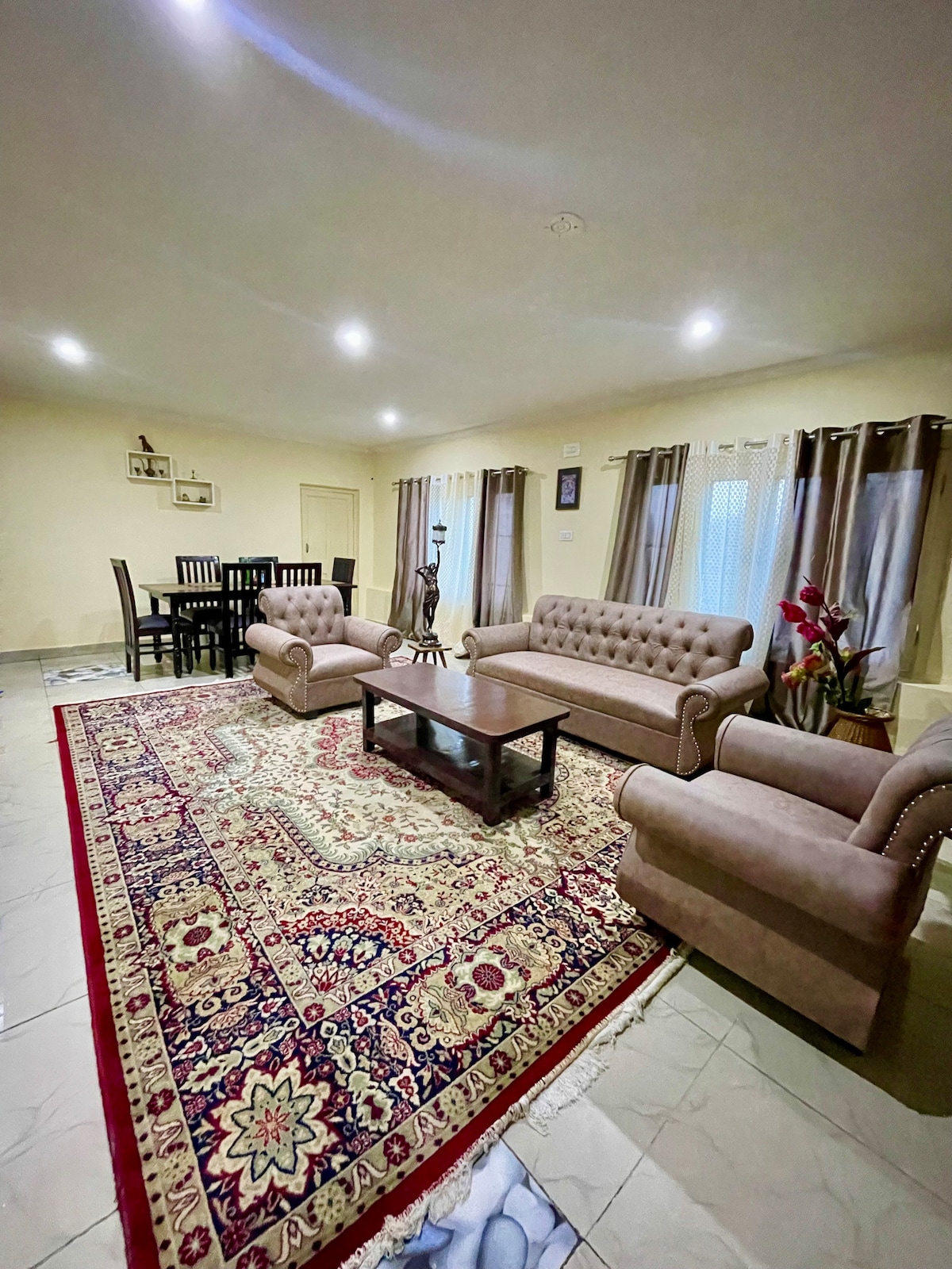 Una base ideal en Srinagar: ¡espaciosa, limpia y bellamente mantenida en el corazón de la ciudad! • Perfecto para familias, grupos grandes y turistas que desean comodidad, espacio y una ubicación céntrica tranquila. • Impresionante vista de la cordillera de Zabarvan desde la propiedad. • Conveniente para excursiones de un día a Gulmarg, Pahalgam, Sonmarg, Doodpathri. • Este departamento está en el primer piso. • A 10 minutos a pie del famoso lago Dal, Nishat Garden y Tulip Garden.