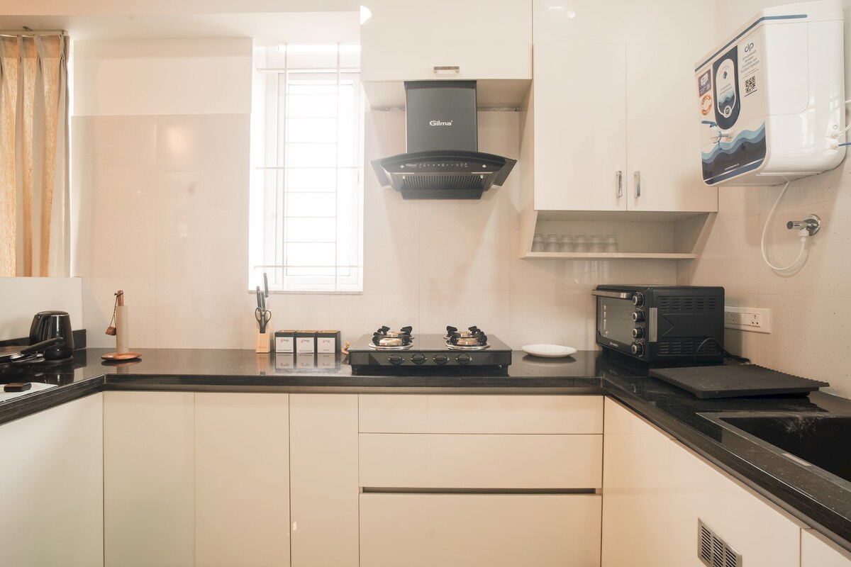 Este es un ático lujoso y espacioso situado en el centro de Bangalore y tiene 3 niveles con mucho espacio privado al aire libre. La vegetación y la luz natural que viene de la claraboya y las enormes ventanas de vidrio son lo más destacado. La casa está totalmente equipada con todas las comodidades modernas necesarias para una gran estadía. Servicio de limpieza diario, energía 24/7, ascensor, estacionamiento, cocina moderna, bar, espacio de escritorio para trabajar, Internet de alta velocidad, televisores de 65 pulgadas, barra de sonido JBL 5.1 son algunas de las comodidades estándar.