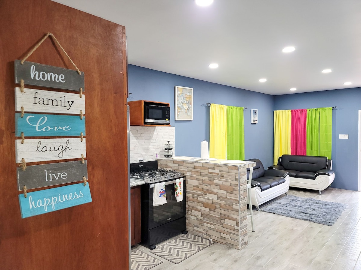 Apartamento de 1 dormitorio en Cardiff Hall con terraza y desayuno continental de bienvenida - Apartamento autónomo. - Zona encantadora - Porche privado Jardín de 1 acre - Cocina pequeña equipada. - Aeropuerto de Montego Bay 1 hora. - A 5 minutos en auto de playas privadas y públicas, bares, tiendas de comida y cafés. -Grotto Caves, Dunns Falls, Ocho Ríos en 10-30 minutos. - Nuestros perros pueden ladrar. - Redes de mosquitera de ventanas. - Wifi gratuito más respaldo de energía para el router + un escritorio. - Desayuno continental de bienvenida en tu primera mañana en el patio.