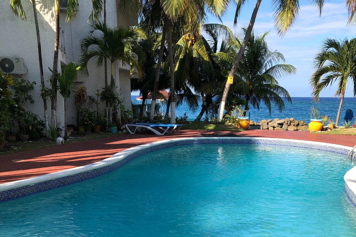 Ofrecemos una experiencia tradicional de vacaciones junto al mar en el Caribe. Apartamento tropical, relajante y familiar de 1 dormitorio ubicado en un complejo de 4 estrellas con una gran cantidad de comodidades divertidas y únicas a tu disposición. Ni siquiera un minuto a pie de su puerta a 2 playas en la propiedad. Acceso a una gran piscina, hamacas, cancha de tenis, cancha de baloncesto (por nombrar algunos). También hay servicios de niñera disponibles para niños y bebés. Situado en el centro de Runaway Bay, St. Ann - parroquia jardín de Jamaica!