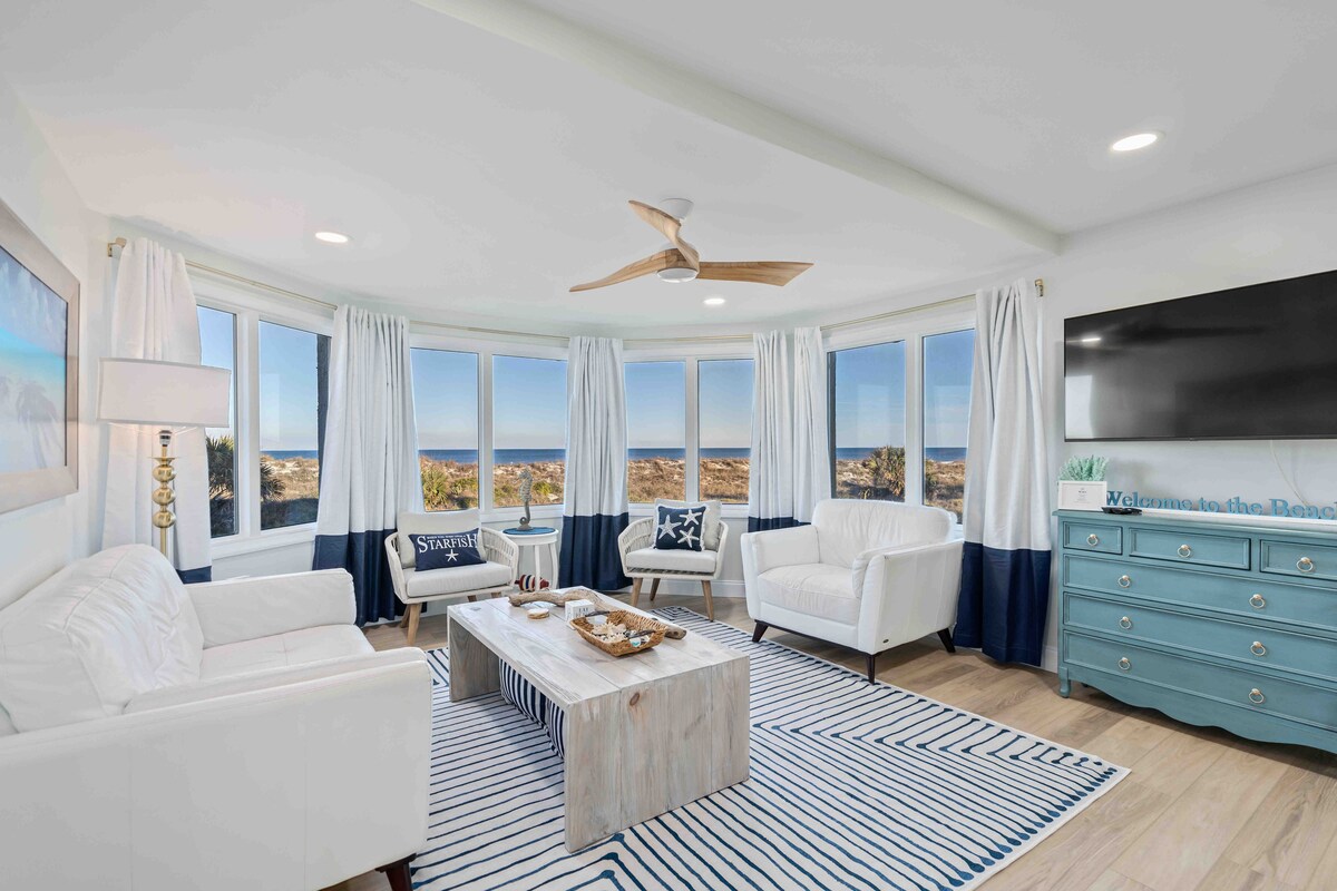 Bienvenido a la mejor experiencia de vida experiencia de vida en la playa de St. Augustine. Con vistas al mar desde el último piso en todos los ángulos, nuestro apartamento es el escenario de cada visión de Jimmy Buffet. Con capacidad para 8 personas en nuestra nueva y moderna morada de estilo costero que solo proporcionará relajación e innumerables recuerdos en este impresionante entorno de Florida. Acceso privado a la playa a 1 minuto a pie. Centro de la ciudad a 10 minutos en coche. Dos piscinas grandes.