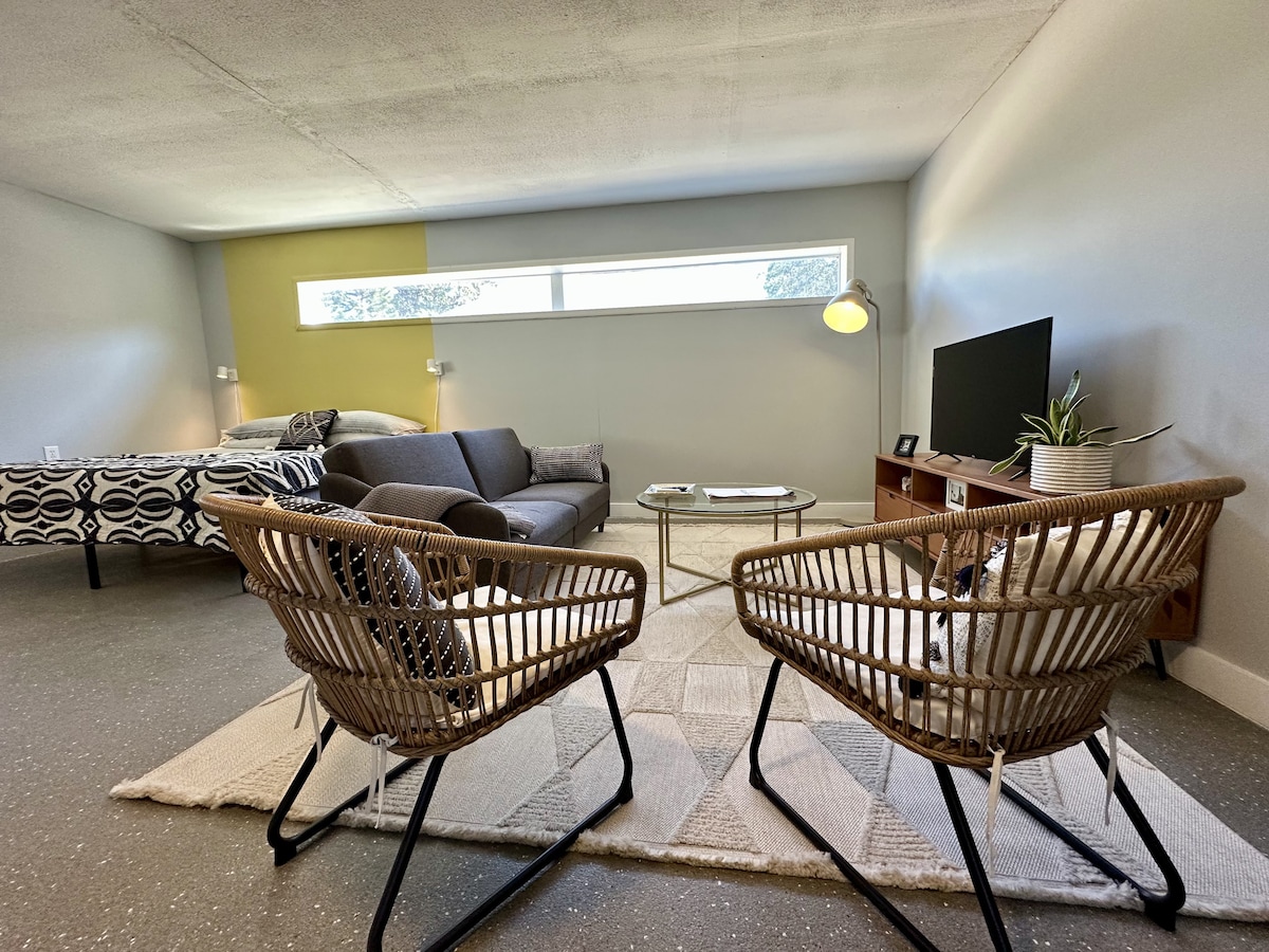 Serene Studio es justamente eso: un espacio tranquilo, silencioso y privado para recostar la cabeza después de explorar St. Augustine. Nuestra casa de campo tipo estudio de 500 pies cuadrados está separada de la casa principal, donde vivimos. Se encuentra en un barrio residencial que se extiende a lo largo de la vía fluvial intracostera (que ofrece magníficos paseos matutinos o nocturnos). Estamos a 10 minutos en coche (¡sin tráfico!) del centro histórico o de St. Augustine Beach. Serene Studio es lo mejor de ambos mundos sin el ruido, el ajetreo y el bullicio.