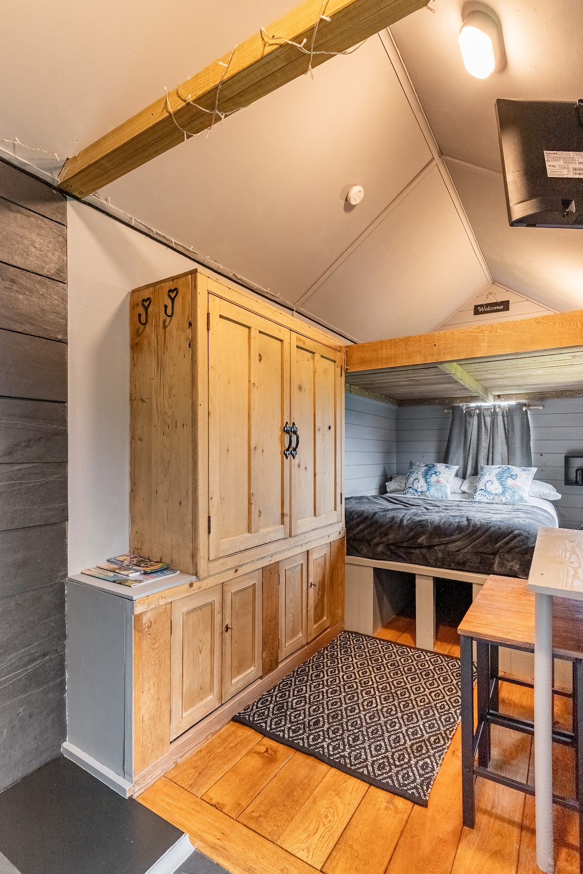 Cwt Bugail (welsh for shepherd's hut) is a slightly bigger than average Shepherd's Hut with a crog loft for extra storage. Situated within Glan-Y-Mor Campsite- ideally located it is a short 7 minute walk to St Davids City Centre, and a 5 minute walk away from the Coastal Path and Caerfai Beach. Open the doors to an amazing sea view overlooking St Brides Bay. Please note that showers, toilets and washing up facilities are located in the middle of the campsite just a few meters from the hut.