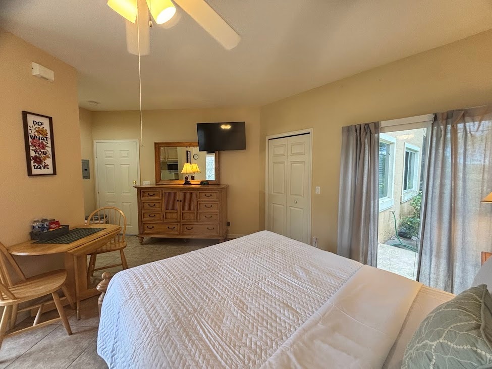 Welcome to our newly renovated studio retreat nestled on a golf course! Perfect for solo travelers or couples. This ground-floor getaway features all-new modern finishes, king bed, fully updated kitchenette, and a renovated bathroom designed for comfort. Enjoy the fresh decor in a peaceful setting. Whether you’re here to relax, or explore, this tranquil escape is the perfect home base. Making it easy to unwind or adventure at your own pace!