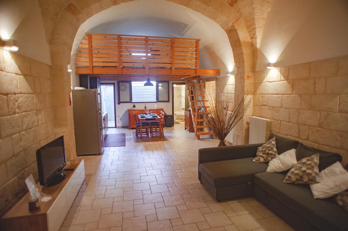 Construido entre los años 1300 y 1400, un loft de piedra con vistas al mar Adriático. Este edificio se utilizó por primera vez una casa de cañones y a lo largo de los años siguientes sirvió como almacén, una fosa de carbón y un taller de un renombrado pintor local. Hoy nuestra familia se compromete a revivir este edificio y su historia, proporcionando a los huéspedes una estancia única y cómoda en el corazón de Apulia.