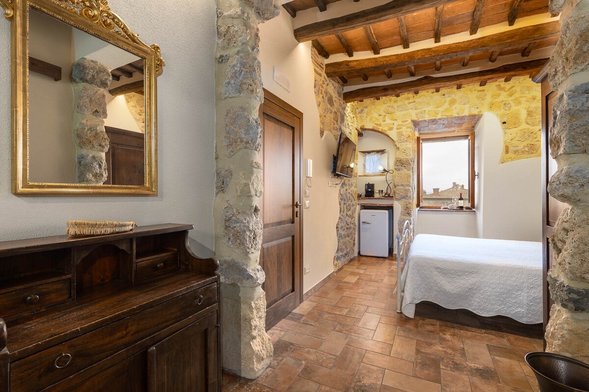 Pequeño y acogedor apartamento para 2 personas amueblado en estilo toscano y con vigas a la vista, inmerso en las suaves colinas de la campiña toscana. Los huéspedes tienen a su disposición un espacio exterior con mesa, piscina compartida, horno de leña y barbacoa, pequeña lavandería y wifi. El apartamento se ha construido a partir de una bonita casa de campo de piedra del siglo XIX, recientemente restaurada según la tradición toscana y dividida en tres cómodos apartamentos.