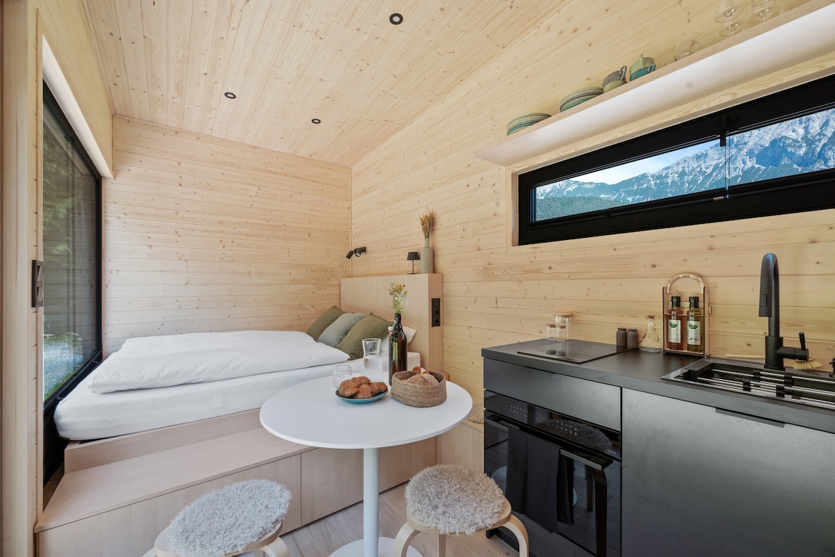 Ankommen, wohlfühlen & Tirol erleben Unsere Alpenbox Freedomky (Tiny House) ist modern eingerichtet und geeignet für 2-4 Personen. Mit Blick auf die Hohe Munde kannst du deinen Urlaub in den Alpen besonders genießen! Zwei Schlafzimmer mit großen Schränken und ein begehbarer Ankleideraum stehen euch im oberen Stock zur Verfügung. Unten befindet sich eine komfortable Couch mit einem großen Smart TV und Blick auf die Terrasse, ein Badezimmer, Küche sowie der Eingangsbereich mit Garderobe.