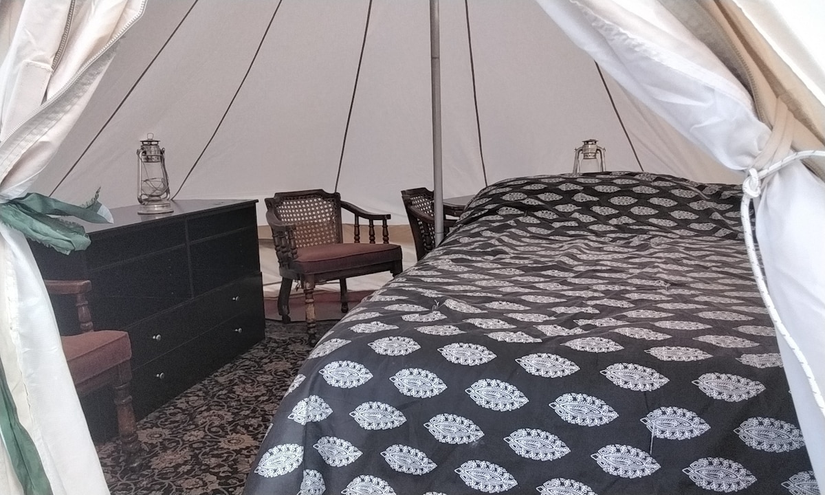 Acomódate en una acogedora tienda de campaña del Viejo Oeste