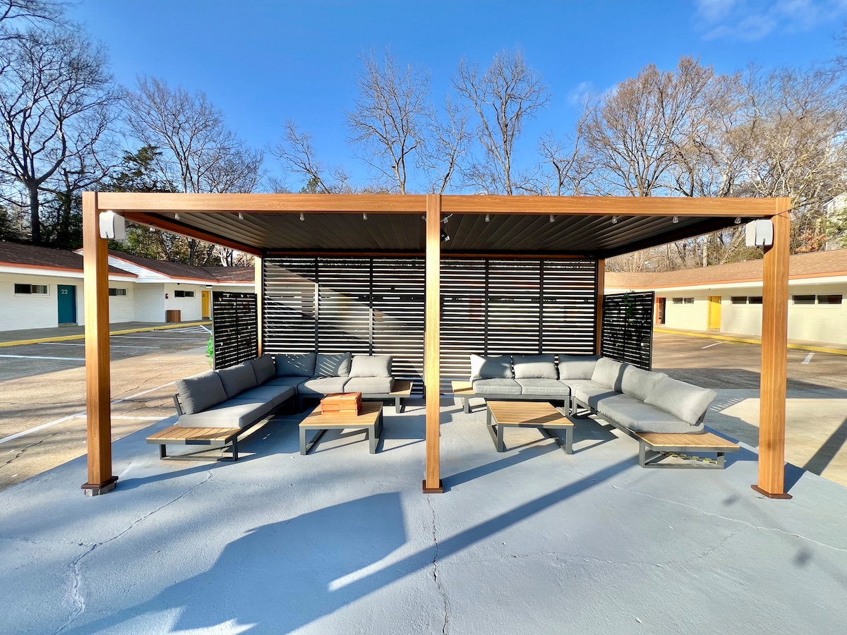Te damos la bienvenida al Far Out Motel, a un tiro de piedra de MSU. Entra en una maravilla del pasado con nuestras habitaciones de inspiración retro, renovadas con un toque moderno para tu máxima comodidad. Disfruta de nuestro elegante patio al aire libre y la sala de estar, perfectos para relajarse o socializar después de un día de exploración. Ubicado convenientemente en el centro de la ciudad, tendrás lo mejor de los restaurantes y la vida nocturna de Starkville justo a la vuelta de la esquina. Experimenta la mezcla perfecta de encanto nostálgico y comodidad contemporánea durante tu estancia.