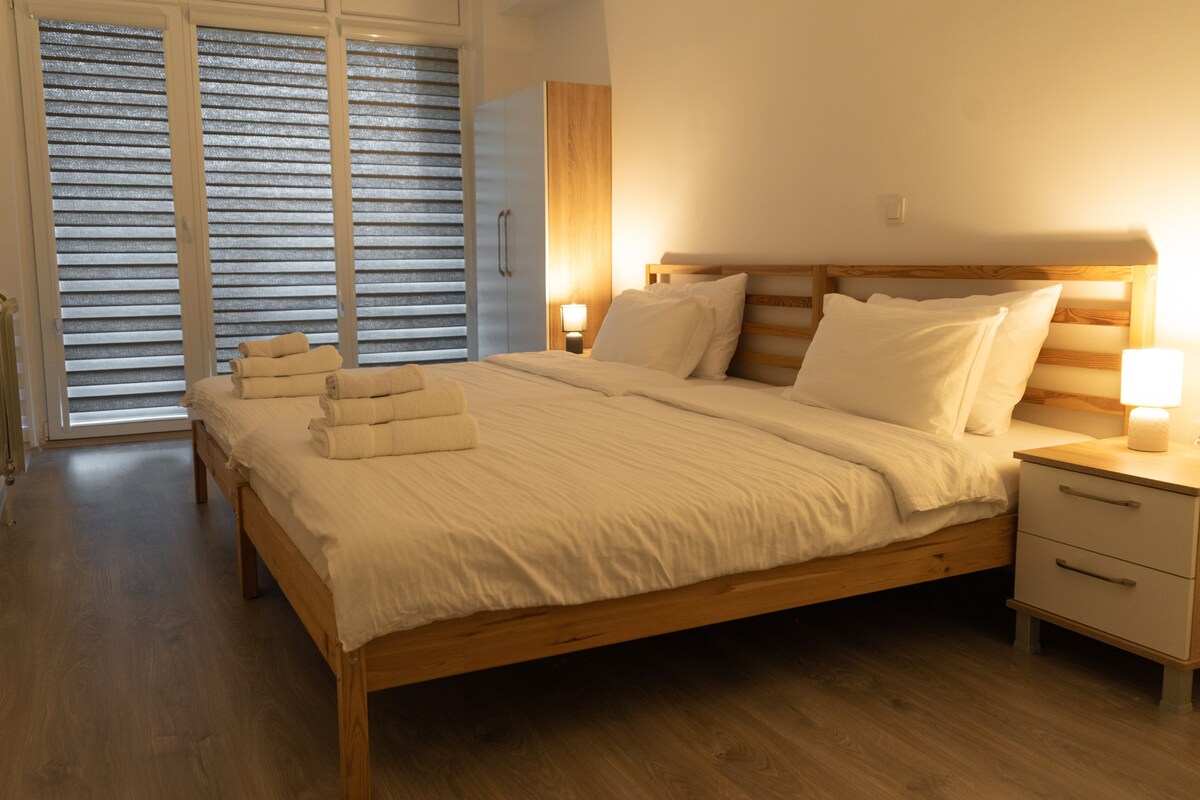 Nuestro espacioso apartamento de 80 metros cuadrados es perfecto para familias o grupos pequeños. Esta acogedora casa cuenta con dos cómodas habitaciones, una luminosa sala de estar, una cocina totalmente equipada y un baño moderno. Situado en un barrio sereno y seguro, encontrarás todo lo que necesitas a poca distancia a pie, incluidos mercados, farmacias y restaurantes. El centro de la ciudad está a solo 5-7 minutos a pie, por lo que es fácil explorar las atracciones locales y disfrutar del ambiente vibrante.