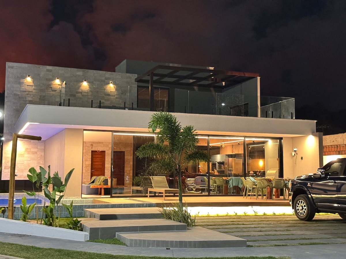 Esta lujosa casa, ubicada en un condominio cerrado junto al mar, ofrece comodidad, lujo y estilo. Disfruta del espacio integrado, la cocina gourmet, la piscina climatizada y el comedor al aire libre. Con 5 dormitorios, 4 suites, 1 casa y 1 dependencia completa, es perfecto para grupos más grandes o familias. Diviértete con la PlayStation 5 y relájate en la piscina climatizada. También ofrecemos un cargador de automóvil eléctrico portátil.