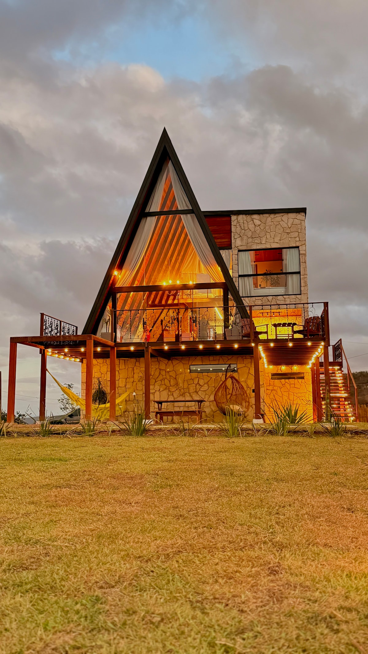 Desfrute de dias de descanso neste charmoso chalé A-Frame, cercado pela natureza e com clima acolhedor. O espaço conta com varanda de madeira, ambientes bem iluminados e total sossego. Ideal para casais e famílias que desejam desacelerar. A área externa é ampla, com espaço para crianças e casinha com escorregador. No local, temos cavalos e oferecemos a experiência de passeio a cavalo para quem desejar, tornando a estadia ainda mais especial.