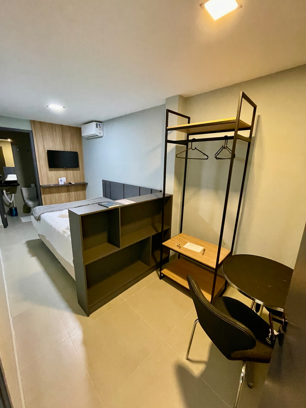 Cómoda suite de 17 m², equipada con aire acondicionado, ducha eléctrica, cama doble, minibar, silla de apoyo, TV por cable y streaming, armario con perchas. Bien ubicado, junto al mar de João Pessoa, junto al centro comercial Mag y cerca del centro comercial Manaíra, también cerca de bares, restaurantes, helados, panadería, gran lugar para hacer senderismo en la playa o en el paseo marítimo de Manaíra.