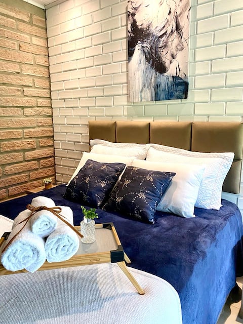 Relájese en este tranquilo y elegante espacio con vistas al lago. Integración total con la naturaleza, ¡una verdadera experiencia! Esta cabaña cuenta con todas las facilidades para un alojamiento agradable y confortable. El espacio, con una decoración moderna, cuenta con cocina completa, wifi, TV, sofá cama y bañera exterior. Acomoda cómodamente a una pareja. Estamos ubicados en la zona rural de Novo Hamburgo, en un condominio cerrado, ideal para quienes buscan el contacto con la naturaleza, con seguridad y comodidad.