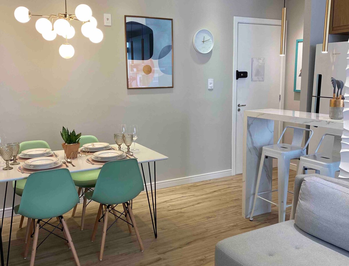 Esse apartamento foi pensado, projetado e executado especialmente para o conforto dos nossos hóspedes! Queremos que nosso visitante tenha a melhor experiência Airbnb de nosso estado! Segue uma linha contemporânea, bem masculina, inspirado no pássaro sanhaço do coqueiro ou “pipira verde” típico de nossa região!