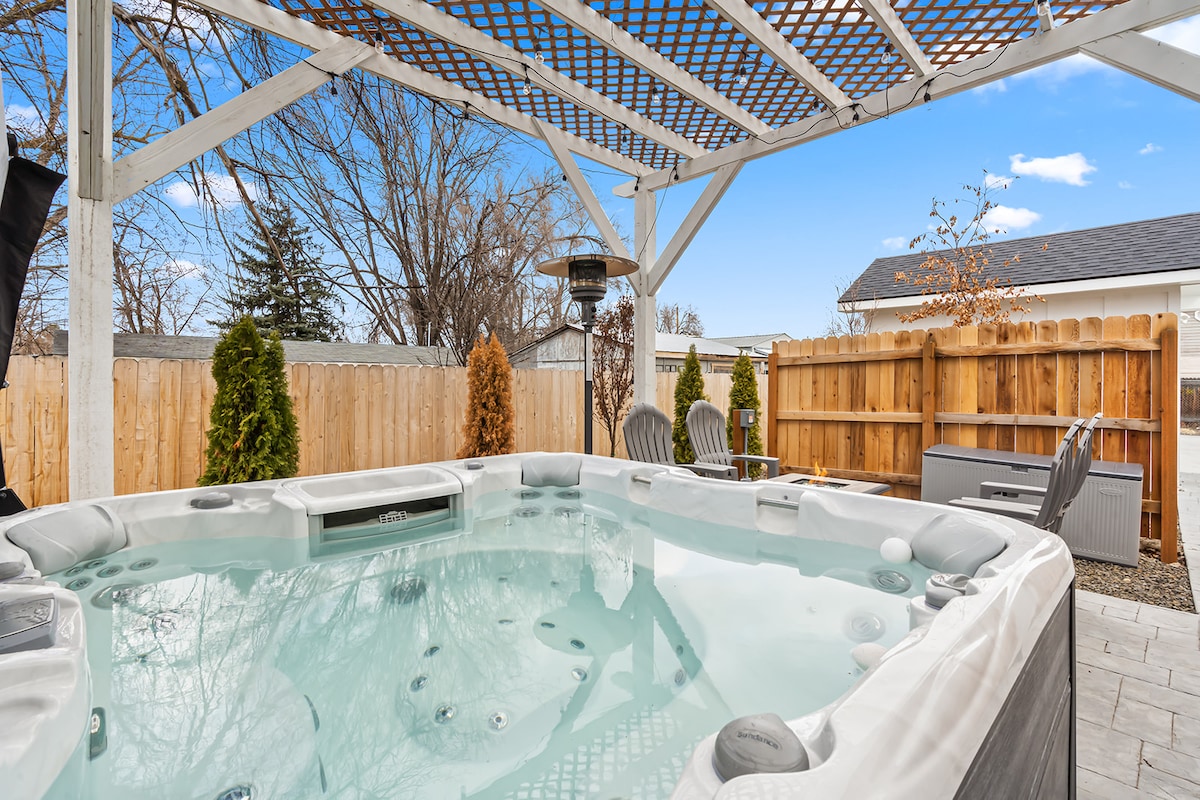 The Modern Farmhouse was recently remodeled with upscale amenities and everything you need for a comfortable stay! Enjoy your own delicious home cooked meals in the beautiful kitchen, gather in the dining room with seating for 8, enjoy a movie on Netflix or Disney+ on a huge 65" OLED 4K TV and 7.2 Klipsch Surround Sound with a large sectional providing seating for the whole family. Outside on the back patio you will find outdoor seating with a fire pit, a hot tub for 5, and a 6 burner BBQ.