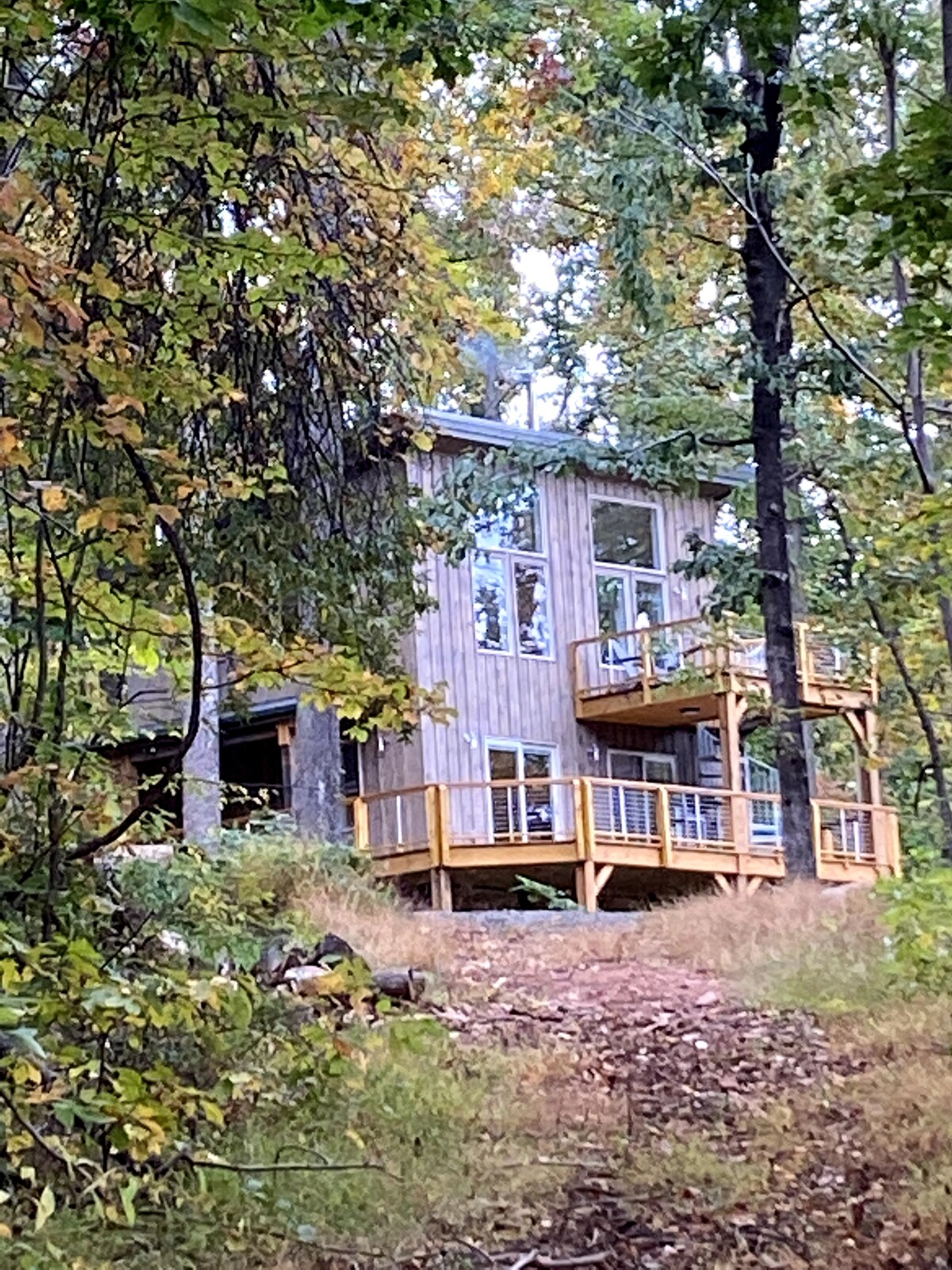 Escondida en el bosque, esta casa del árbol de inspiración escandinava es un lugar tranquilo y pacífico diseñado para una escapada relajada en pareja. Rodeado de árboles y con vistas a hermosos bosques, es un lugar fácil para reducir la velocidad y relajarse. Pasa tu tiempo en el porche envolvente, sumérgete en el jacuzzi, refréscate en el arroyo o acomódate junto al fuego por la noche. Este es un refugio sereno y cómodo donde puedes reiniciar, disfrutar de todo lo que la naturaleza tiene para ofrecer y simplemente estar presente.