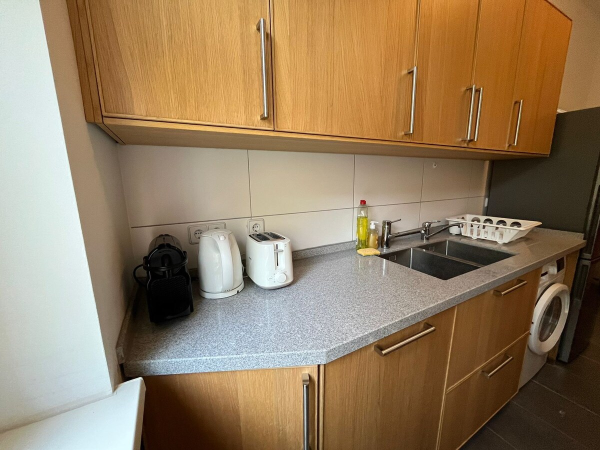 Escápate a nuestro apartamento cuidadosamente diseñado, ideal para dos. Ubicado en un barrio tranquilo, pero convenientemente conectado a una estación de S-Bahn a pocos minutos. Al otro lado de la calle, un parque sereno ofrece una vista tranquila. Con una entrada privada a la calle, la accesibilidad es sencilla. Disfruta de la terraza para comer al aire libre o acércate al interior con amplias ventanas. Recientemente renovado con meticuloso cuidado, encuentra comodidad y estilo en cada detalle.