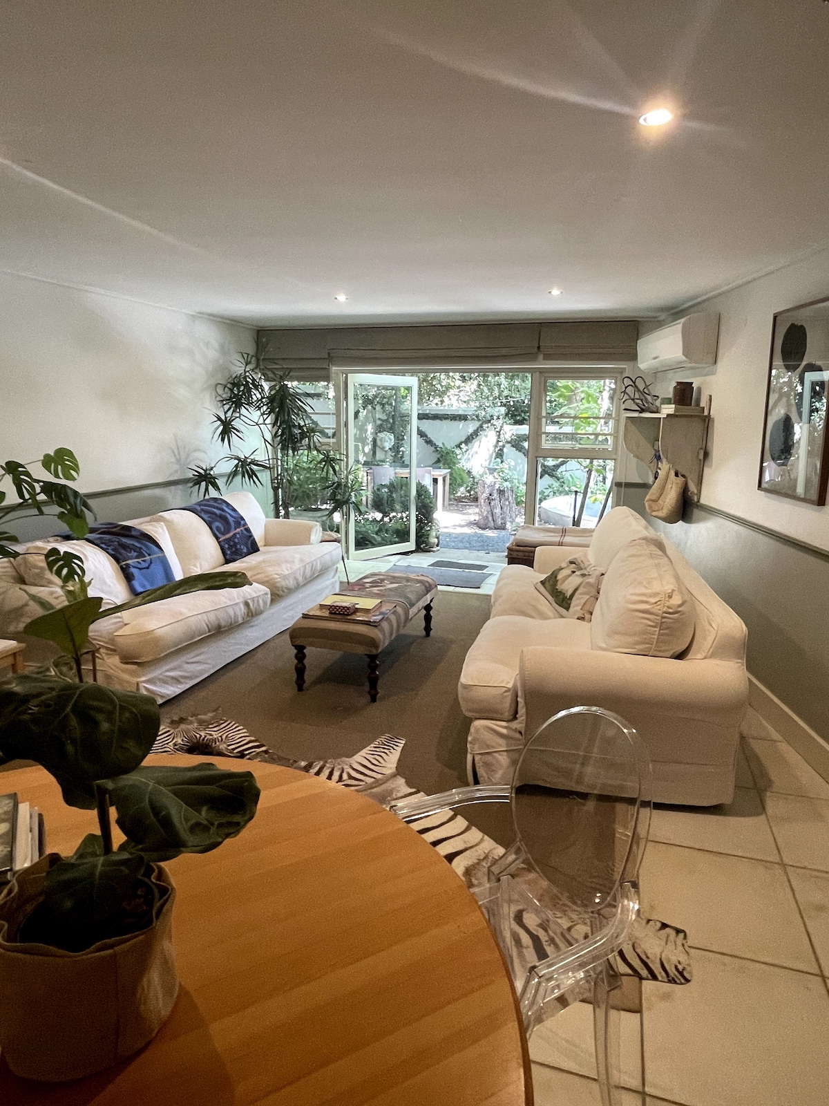 La suite/apartamento de invitados está situado en un tranquilo barrio residencial de Stellenbosch. Se encuentra a orillas del conocido río Eerste y a poca distancia a pie del centro histórico de la ciudad. Hay dos dormitorios de 2 dormitorios, 1,5 baños, cocina, sala de estar y 2 patios. Tiene capacidad para 4 personas. Otros servicios incluyen TV vía satélite, wifi, piscina, paneles solares (suministro de energía ininterrumpido) y aparcamiento seguro. Es un lugar ideal para alojarse en familia o con amigos que recorren el país.