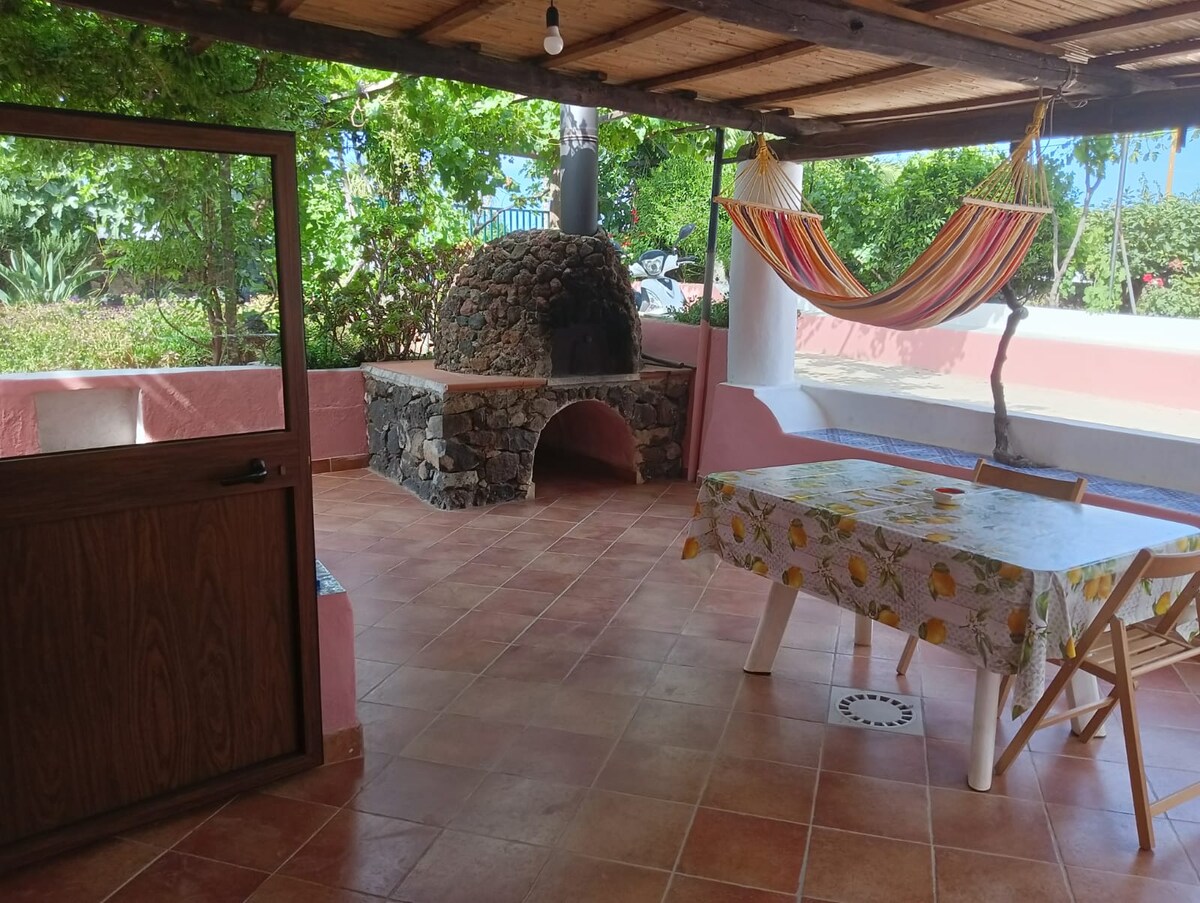 Relájate en este lugar tranquilo y céntrico. La casa puede acomodar hasta 2 huéspedes. Disfruta de un espacio al aire libre a la sombra de una pérgola desde el que disfrutar de un amplio horizonte y del maravilloso cielo estrellado filicudar.