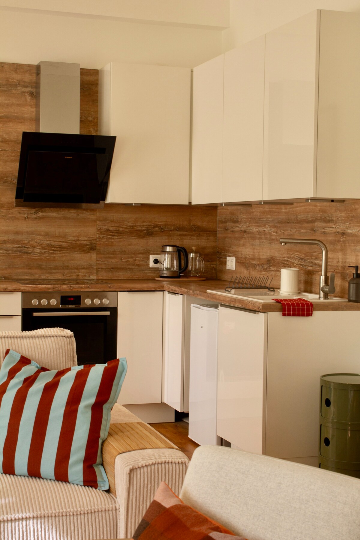 Welcome to this unique carriage house (90sqm). Built in 1922, it has been carefully restored and converted with high-quality materials. This romantic remise is located on Potsdam villa premises featuring old fruit and walnut trees, directly at the shore of Jungfernsee. In the summer, you can enjoy a swim in the lake before breakfast, if you wish. Only a stone’s throw away from the world-famous Glienicke Bridge. For decades during the Cold War, the bridge was the place where spies were exchanged.