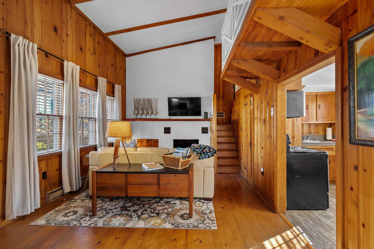 Enjoy this quaint Cozy Cottage with bedroom loft! This adorable 1-bedroom unique place has a style all its own. Built in the 1960’s behind the main house, it has floor to ceiling pine paneling, pine floors and fireplace. It has been recently remodeled with new tiled bathroom , newly remodeled kitchen and stainless steel appliances. A new Heating and Air unit was installed summer 2021. The pine paneling and 16 foot high ceilings gives it that "cottagey" feel.