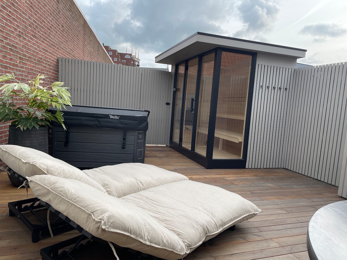 Una joya completamente nueva en el corazón de la histórica Breda. El lujo y la comodidad se unen para una estancia inolvidable. Nuestro apartamento tiene dos dormitorios elegantes, una acogedora sala de estar, un baño moderno y una cocina totalmente equipada. Pero eso no es todo. Lo que nos hace realmente únicos es nuestra impresionante terraza en la azotea, donde puedes disfrutar de la tranquilidad mientras te sumerges en nuestro jacuzzi privado o te relajas en nuestra sauna. Un hallazgo raro en el centro de Breda