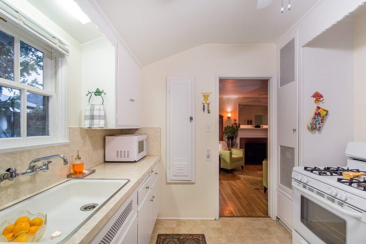 Relájate en tu propio jardín secreto justo afuera de tu puerta. Luego entra para disfrutar del acogedor ambiente de las paredes sombreadas en colores pastel, los cálidos suelos de madera y el entorno acogedor. Prepara tus propias delicias epicúreas en una cocina completa y bien equipada. Y prepárate para disfrutar de tu estancia serena y cómoda en el secreto mejor guardado de la capital mundial de los medios de comunicación. La casa de campo se encuentra en el distrito ecuestre de Burbank. Cuando camines hasta nuestro parque local, es posible que veas algunos caballos pasando. La casa es de 1 dormitorio totalmente amueblado, 1 baño con un sofá tamaño king extraíble en el salón. Tenemos capacidad para 4 personas. Nuestra cocina está totalmente equipada para que disfrutes cocinando. También tenemos un pequeño porche cerrado con un escritorio de oficina y 2 cómodas sillas de lectura en caso de que necesites mezclar negocios con placer. Y por último, pero no menos importante, tendrás tu propia entrada privada, aparcamiento y patio con jardín a la sombra. A poca distancia a pie de los principales estudios, increíbles cafeterías, restaurantes, paradas de autobús, mercados y cerca de todas las principales autopistas. Tenemos AT&T Uverse si prefieres pasar el día viendo nuestro televisor de pantalla plana. Y tenemos wifi gratuito si necesitas actualizar tus redes sociales con las fantásticas fotos de tu viaje. Toda la casa del jardín es tuya, con una mesa de comedor de jardín exterior para cuatro personas. ¡Dos plazas de aparcamiento privadas y un relajante jardín privado nativo de California! Mi familia vive en la casa principal. La casa de campo está en nuestro patio trasero, separada por un enrejado lleno de rosas durante todo el año. Puedes tener toda la privacidad que desees o venir a sentarte en tu porche delantero y visitarnos. Vivir en las instalaciones nos facilita ayudarte con lo que necesites. La casa de campo se encuentra en un barrio ecuestre muy solicitado de Los Ángeles. Camina a lo largo del río hasta el centro ecuestre. Un corto paseo por Riverside Dr. conduce al lago Toluca, hogar de muchas celebridades. Pasa el día en Disneyland, Warner Brothers Studio Tour, Universal Studio o caminando por Hollywood Blvd. ¡La zona de restaurantes está a un paseo de distancia llena de cafeterías locales y restaurantes galardonados! ¡Descansa, relájate, explora, repite! Seguro que has escuchado la expresión: «Nadie conduce en Los Ángeles». Bueno, eso es en su mayoría cierto. Estamos muy cerca de una parada de autobús y metro. Pero te recomendamos encarecidamente que alquiles un coche para tu visita. Estamos cerca de muchas atracciones de la zona. A poca distancia de: A 1 minuto del parque más cercano con pista para correr. A 5 minutos del Starbucks más cercano. A 5 minutos del supermercado, farmacia, banco y una variedad de restaurantes locales (mexicanos/indios/sándwiches/pizza...) más cercanos. A 5 minutos de Warner Bros Studio Lot & Tours. A poca distancia en coche de: A 8 minutos de Universal Studios. A 8 minutos del aeropuerto de Burbank (BUR). A 10 minutos de Studio City. A 12 minutos de Hollywood. A 12 minutos del Observatorio Griffith Park y del cartel de Hollywood. A 15 minutos de caminatas en Hollywood Hills. A 15 minutos del centro de Los Ángeles. A 18 minutos de Beverly Hills. A 35 minutos de Santa Mónica y del mar. A 30 minutos del aeropuerto de Los Ángeles (LAX). A 30 minutos del monumento a Gandhi y de la famosa autopista del Pacífico. A 55 minutos de Disneyland y del condado de Orange. ¡A 2 horas del zoológico de San Diego, Legoland y SeaWorld! ¡Tu plaza de aparcamiento privado ahora tiene un enchufe para un vehículo eléctrico!