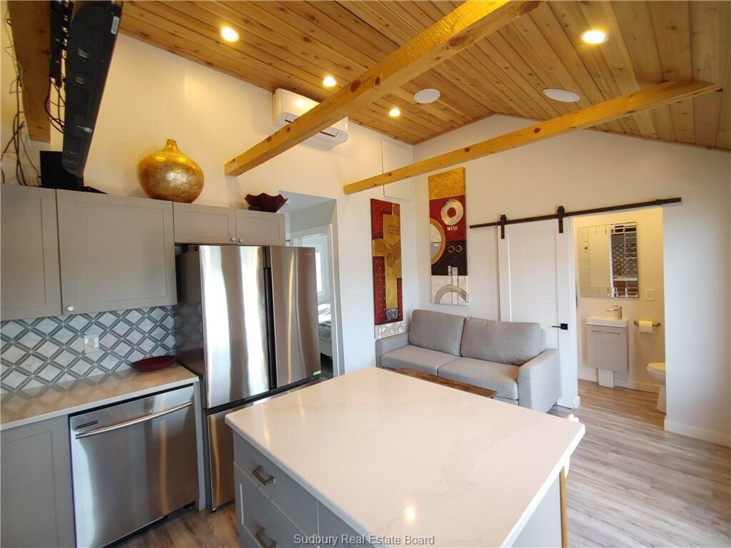 Esta unidad privada en la planta baja es un refugio tranquilo a la orilla del agua. Es una escapada perfecta para aquellos que buscan paz y relajación a través de la belleza natural. Una sensación de casa de campo en medio de la ciudad, estarás a poca distancia de Health Sciences North, Idylwylde Golf Club, Laurentian University, NOSM y Science North. A 500 m de una parada de autobús y a 5 minutos en auto del centro de la ciudad y del extremo sur. Rutas de senderismo cercanas, y puedes tomar prestados los kayaks o el bote de remos para un viaje en el lago.