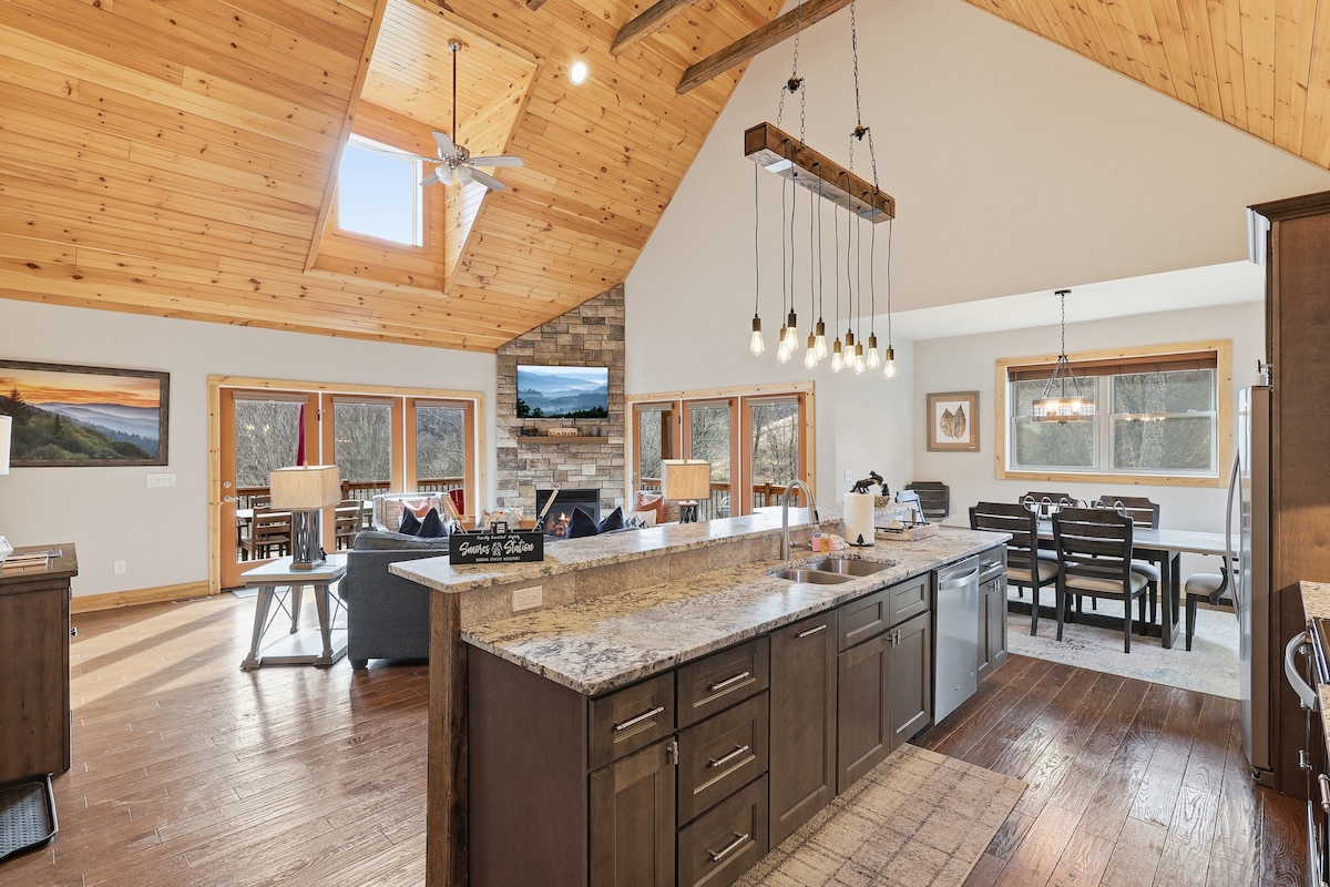 Cabaña de montaña alpina, rústica y moderna, a 7 minutos de Boone - Vistas de 180 grados de múltiples rangos - Parrilla de gas, jacuzzi*, fogata + s'mores 🍫 - Futbolín, shuffleboard + ping pong - Apto para familias/niños + Accesible para sillas de ruedas en todo el nivel de correo Impresionante cabaña en forma de A: la arquitectura ofrece vistas a la montaña en todas partes, también cuenta con un concepto de vida abierta, perfecto para reunirse con familiares y amigos.