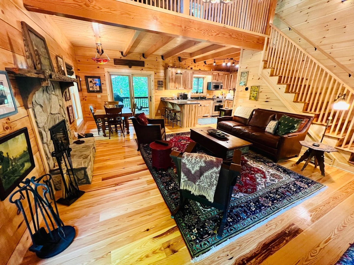 Cerca de Boone/Appalachian State y Valle Crucis, la cabaña del barrio se encuentra en 100 acres con rutas de senderismo privadas, chimenea y casa del árbol. Ofrece dos espacios habitables: la casa principal, con capacidad para 6 personas y una casa rodante (encima del garaje), tiene capacidad para 2-3 personas. Nuestra casa cuenta con una decoración de artistas locales y artesanos de Southern Highland, así como cable y wifi, cerca de pesca, tubing y senderismo, así como galerías, The Mast Store y restaurantes. Descansa, relájate y rejuvenezca en este entorno tranquilo.
