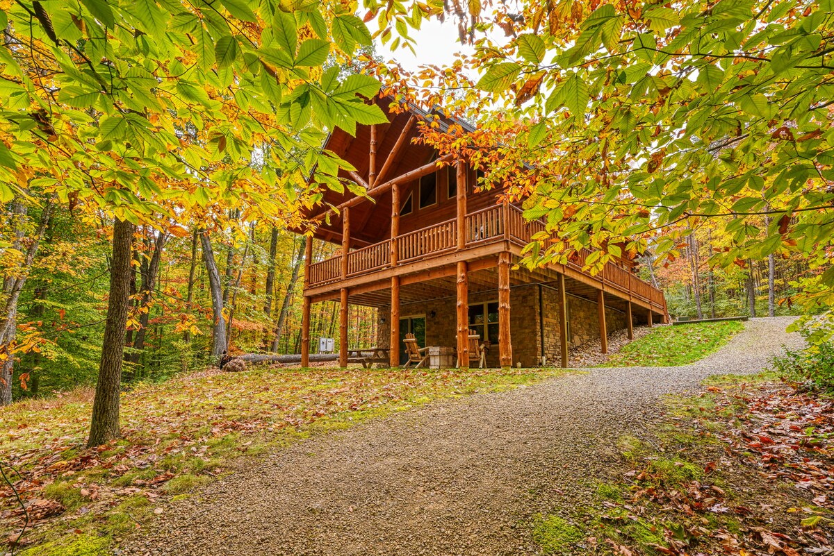 Ubicada cerca de Hocking Hills, una hermosa cabaña de 2 pisos con cubiertas circundantes, ubicada en 20 acres boscosos, ¡tuyos para explorar! ARRIBA: 2 dormitorios, 2 baños, cocina con lavavajillas, sala de estar con chimenea, cuarto de servicio completo con lavadora y secadora. ABAJO: 2 dormitorios, sala de estar con chimenea, baño completo con ducha a ras de suelo, mesa de billar, mesa de bar y sillas, nevera pequeña y mesa de billar. Parrilla y chimenea, jacuzzi y muchos muebles al aire libre.