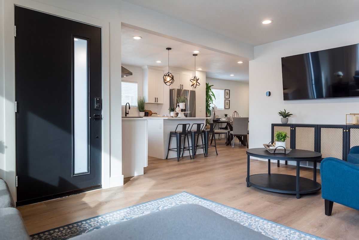 Recientemente remodelado, privado y tranquilo, con un toque de diseñador, refugio de dos dormitorios. Patio trasero bellamente ajardinado, gran patio con bañera de hidromasaje Bullfrog para cinco personas, televisor inteligente de 65 pulgadas, chimenea de leña. Servicios: lavadora y secadora (PARA HUÉSPEDES QUE SE ALOJEN 7 DÍAS O MÁS) cocina y baño totalmente remodelados, comedor en el patio con parrilla al aire libre. Nuevas camas tamaño king y queen. A 20 minutos del aeropuerto de SLC y de las estaciones de esquí. Cerca de excelentes restaurantes y zonas comerciales. (El anfitrión ocupa el piso de arriba). Ambos niveles están separados de forma privada.