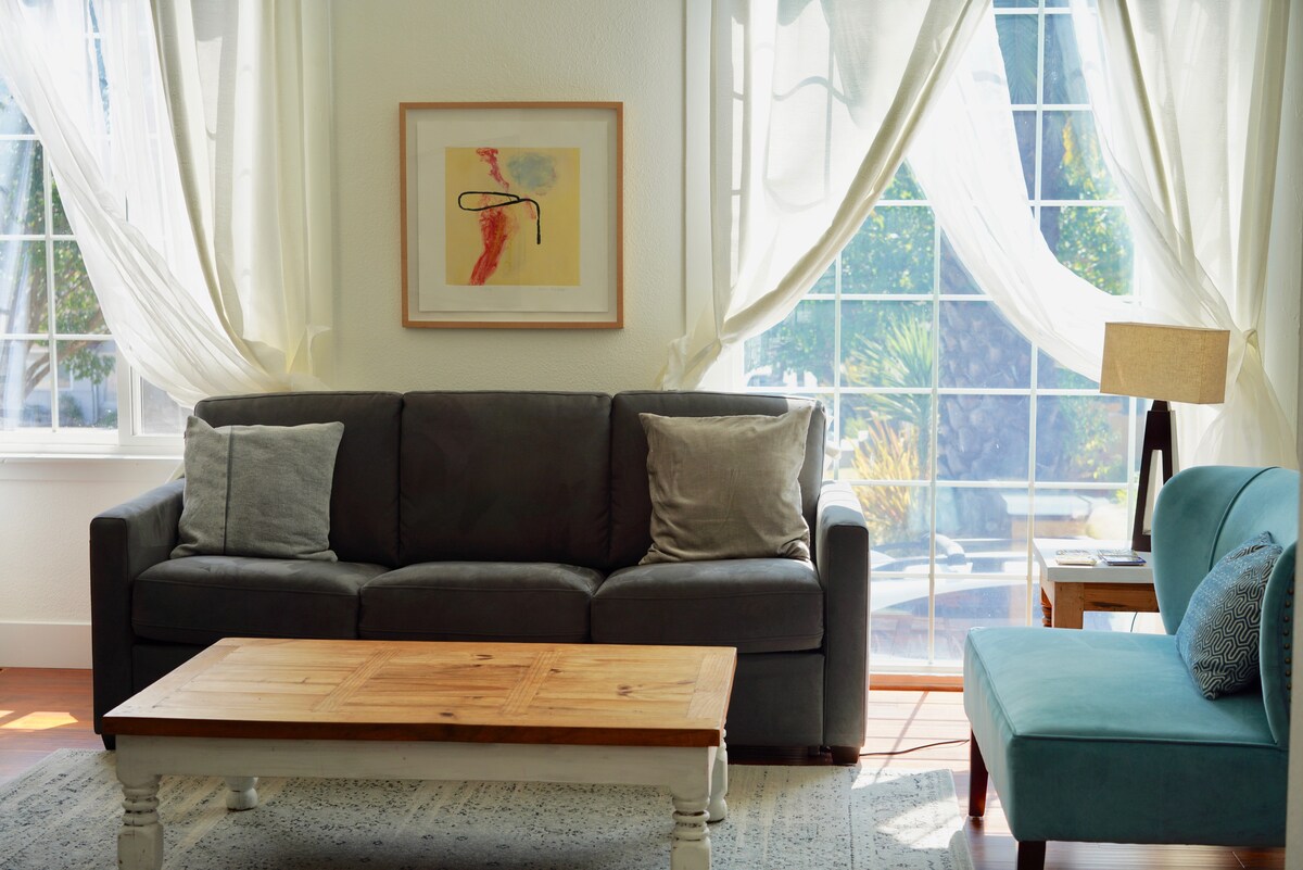 Bienvenido a esta dulce casa vintage en el codiciado barrio de St. Francis Park en Vallejo! Está convenientemente ubicada cerca del Ferry Building y a poca distancia en coche de Mare Island. ¡Napa también está a 25 minutos en coche! La casa privada independiente de 900 pies cuadrados se encuentra en una tranquila calle sin salida y cuenta con mucha luz natural, una decoración moderna y ecléctica y una terraza relajante.