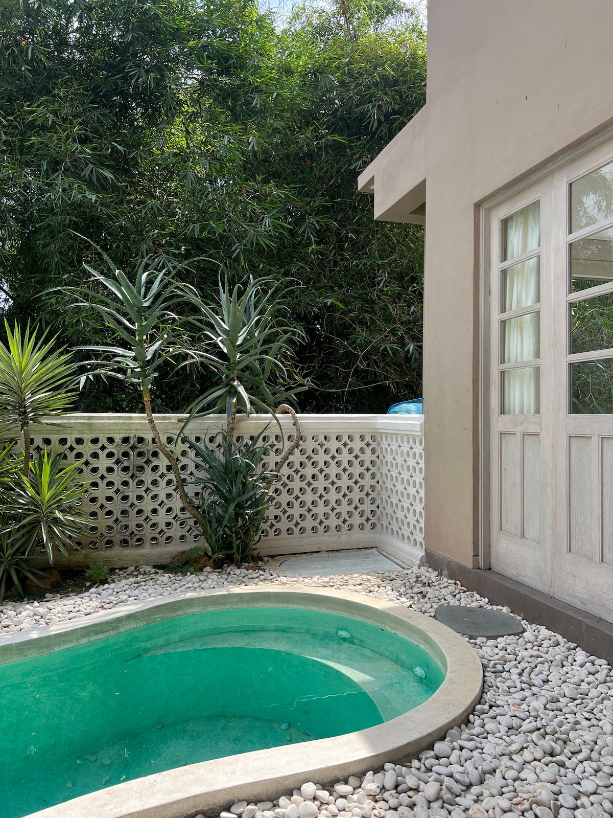 Have fun with the whole family at our stylish place. It’s a heated natural water from the hill (not a hot spring). Open from the living room, your children will love playing in this hot tub 💙 1. TIDAK available untuk pasangan yang BELUM menikah. 2. Setelah jam 10 malam kurangi volume suara dikarenakan area pemukiman. 3. Jam operasional Air Panas di kolam dari jam 6 pagi - 10 malam. 4. NO ALCOHOL, DRUGS, PORN & PARTY. 5. Security patroli 24 jam.