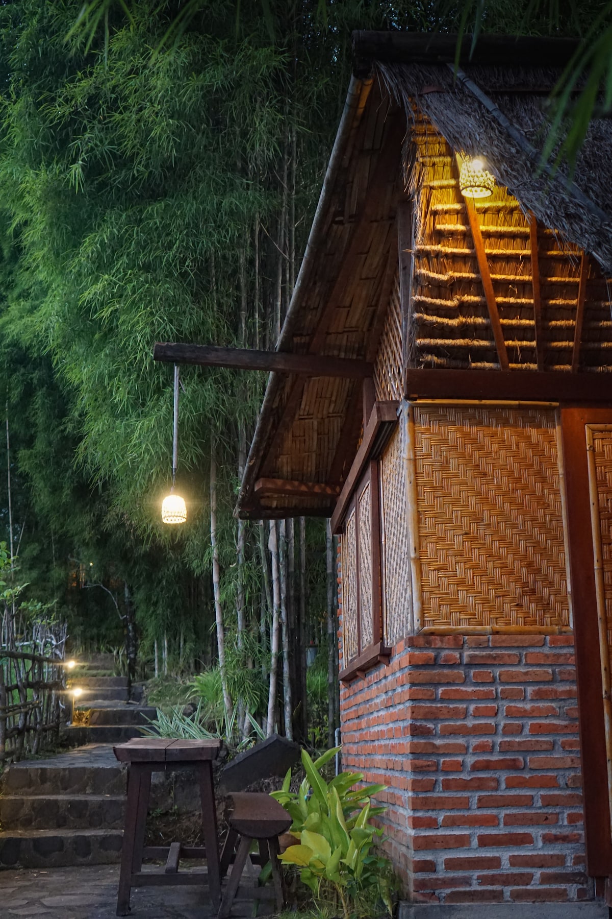 Cabaña de bambú tradicional tranquila en la naturaleza con desayuno incluido
