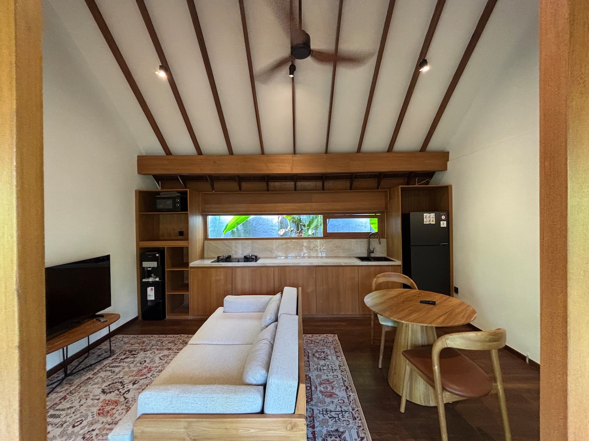 Stay in an authentic Javanese wooden Joglo - a romantic hideaway in the heart of Canggu. Walk to surf breaks, cafés, and boutiques, then unwind in your 25 m² air-conditioned living and sleeping space with a king bed, desk, and sitting area. The Joglo features a covered semi-open kitchen and bathroom, a private garden, and plunge pool - offering privacy, comfort, and handcrafted wooden architecture that guests say feels even better in real life. Ideal for couples, honeymooners, or solo travelers.
