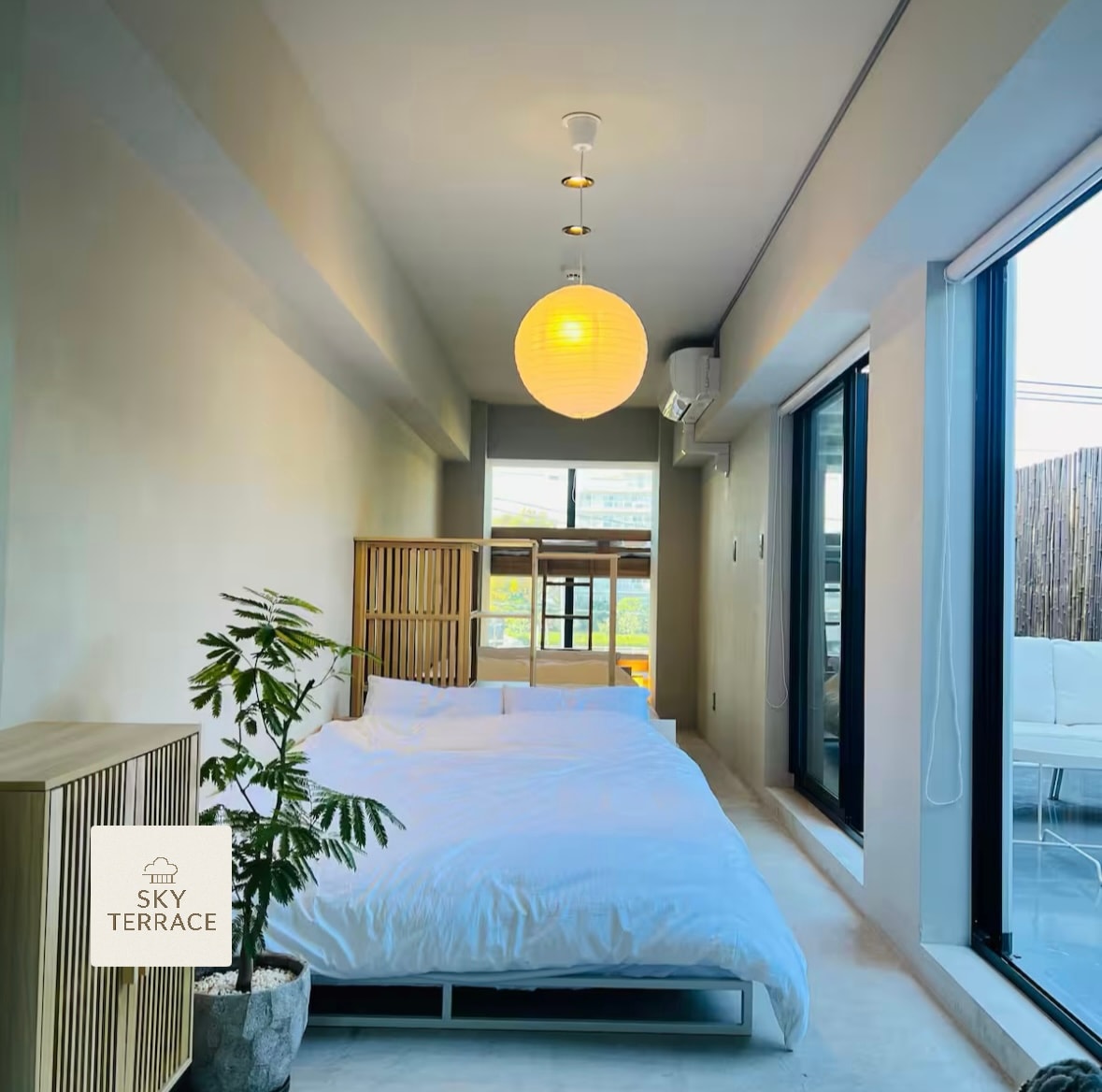 Este alojamiento es ideal para disfrutar de una estancia de larga duración con la familia o los amigos. Es un apartahotel que abrió sus puertas en 2023 y está situado en una tranquila zona residencial cerca del centro de la ciudad. En los alrededores hay un parque, un santuario y un estanque. El espacioso interior de 40 m² cuenta con dos camas semidobles, una litera y un sofá cama, con capacidad para cinco adultos. (Los niños menores de 2 años pueden dormir en la cama con sus padres de forma gratuita). Hay una cocina compacta con capacidad para cocinar, una lavadora-secadora totalmente automática, un baño de gran tamaño y un aseo independiente. También cuenta con Android TV y wifi gratuito, por lo que es un entorno adecuado para pasar el rato o trabajar en el interior. También puedes relajarte en la azotea abierta a los huéspedes. El check-in se realiza mediante un sistema de check-in sin restricción de horario que utiliza una tableta, por lo que no hay que preocuparse por llegar a altas horas de la noche. La puerta se controla con el último sistema de llave táctil. Se encuentra a 5 minutos a pie de la salida de la estación más cercana (estación Sumiyoshi, línea Hankyu, línea Toei Shinjuku), y hay un supermercado cerca. Relájese con su familia en este tranquilo alojamiento.