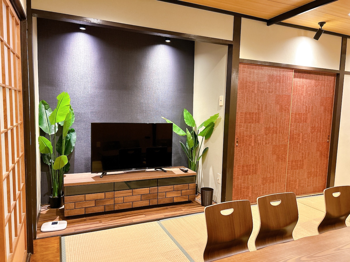 ¡Está la playa de arena más hermosa de Osaka🏝️ y las aguas termales más cómodas♨️! 🏡Situada en un vecindario tranquilo con un amplio patio con tres o tres o dos árboles o dos, la casa es espaciosa y cálida, todo es muy relajante🌅. A 8 minutos a pie de la estación "Wazumi Tottori", acceso directo a "Wakayama" a 20 minutos o Osaka "Tennoji" a 50 minutos. El aeropuerto de ✈️Kansai KIX está a solo 20 minutos en auto. 🙆🏻♂️Para los visitantes que lleguen temprano y tarde por la noche debe ser tu mejor opción. Comodidades cercanas Las aguas termales ♨️"Hiranodai no Yu 'an" están a 8 minutos en coche. ⛳️Campo de golf "Hiranodai Golf" a 8 minutos en auto. 🛍️El "enchufe" el enchufe "el enchufe está a 15 minutos en auto del enchufe y el centro comercial del enchufe en el El parque de playa 🏝️"Spring South Rinku Park" está a 12 minutos en auto. 🛒"Aeon Mall Rinku" está a 12 minutos en auto. La 🏔️"ciudad de Wakayama" se encuentra a 30 minutos en auto. ¡Tienda de ramen de supermercado cerca de casa de familia! Hay dos bicicletas en el bed and breakfast. En la casa Hay una gran sala con mesa de comedor, sofá para grupos grandes. Hay 5 camas super queen y 3 camas en el piso de tatami.Tiene capacidad para 10 personas. También puedes usar la televisión de forma gratuita para ver "Netflix". Fuera de la casa Hay un exquisito jardín soleado para tomar un té tranquilo de la tarde en☕️ el jardín y una terraza extragrande para tomar el sol.🌅 🅿️Hay un estacionamiento con capacidad para dos autos.