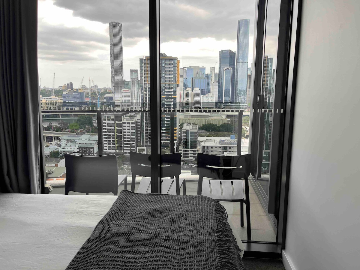 Perfecto para viajeros de negocios y parejas. ¡Disfruta de este apartamento céntrico de 1 dormitorio solo para ti! Ubicado en el piso 11 de Brisbane One Tower 2, este elegante apartamento está a poca distancia a pie de: South Bank Parkland (800 m) Centro de Artes Escénicas de Queensland (1,2 km) GOMA (1,2 km) Brisbane CBD (a 25 minutos a pie) Estación de South Brisbane (800 m) Estación de autobuses del centro cultural (12 minutos a pie) West End: restaurantes vibrantes, cafeterías y tiendas boutique y tiendas de comestibles, todo a un paseo de distancia.