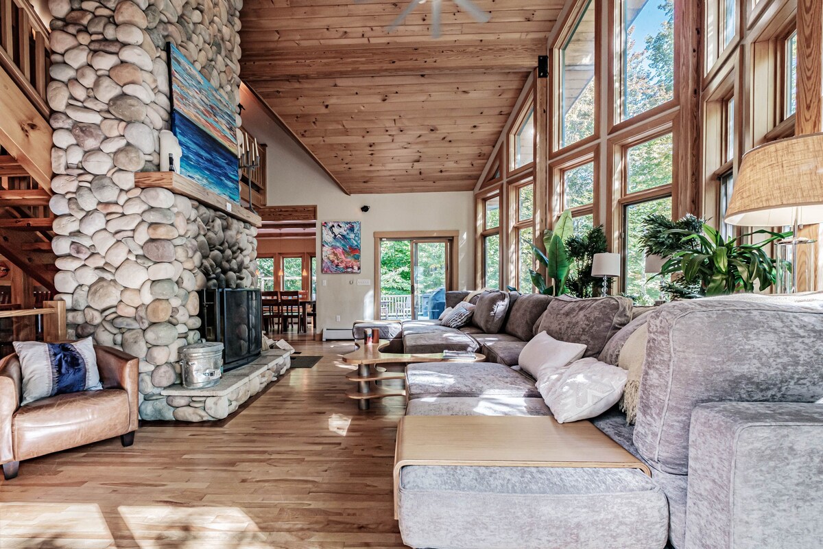 ✔ Amplio 4 dormitorios, cama nido, 4 baños con capacidad para 12 personas ✔ La mejor sala de juegos con ping-pong, baloncesto, Pac-Man, NBA Jam y más – ¡Controlado por el clima para la diversión del año! ✔ Relájate en el jacuzzi iluminado con cuerdas con vistas panorámicas del río Sunday. ✔ Fogata con vista a la montaña ✔ Amplia terraza de comedor con parrilla de gas. ✔ Chimenea de gas Generador ✔ de casas completas ✔ Aire acondicionado ✔ Se admiten perros (con tarifa) Silla ✔ alta, Pack ‘n Play y toda la ropa de cama, toallas y jabones incluidos A ✔ 10 minutos de Sunday River